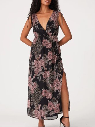 Women's printed holiday dress with shoulder floral print