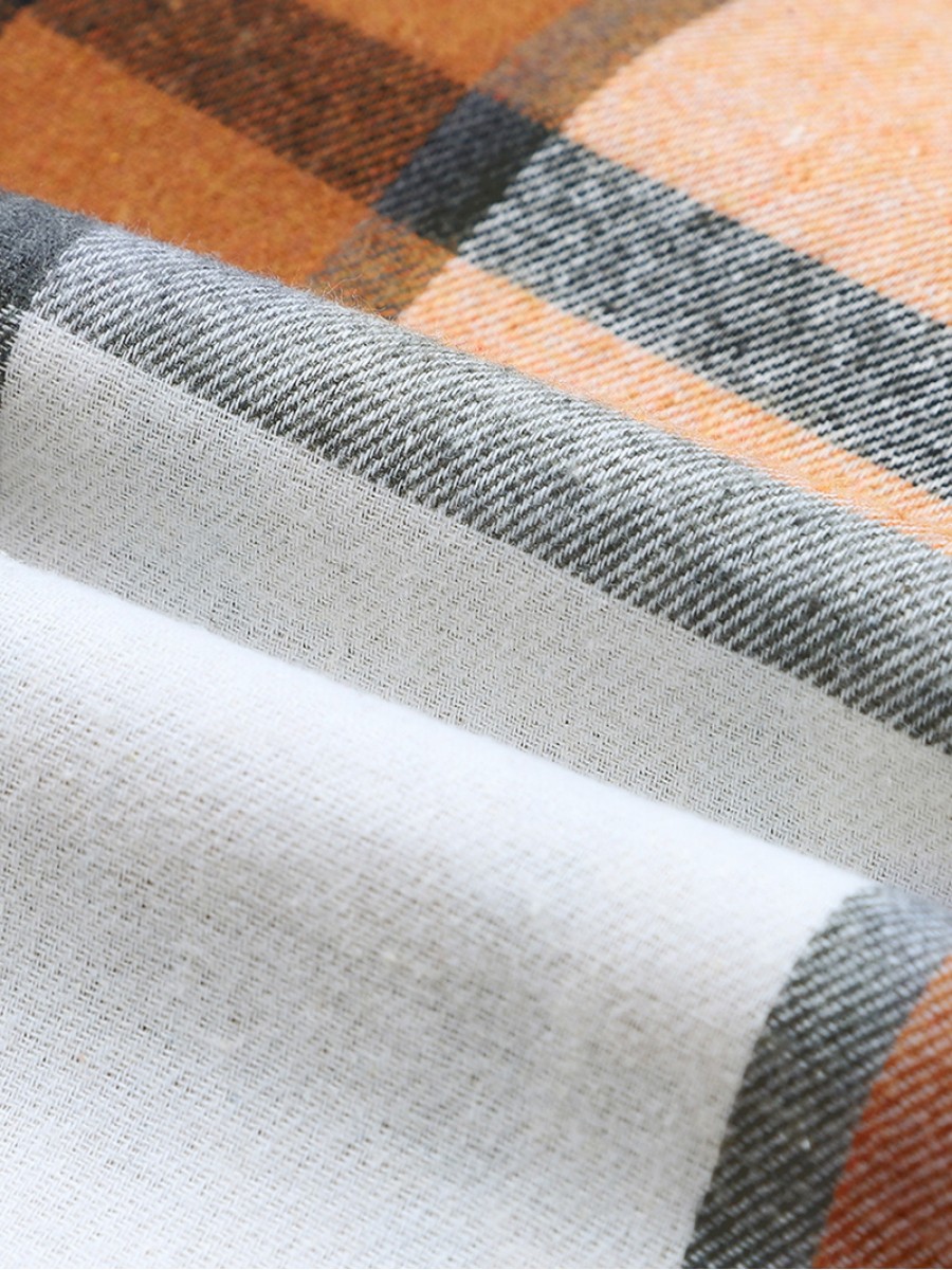 Khaki Plaid Pattern Collared Neck Ruffled Sleeve Shirt Dress