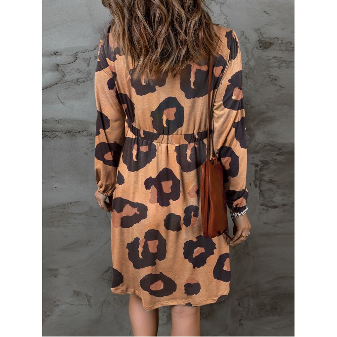 Leopard Print Button Front Bubble Sleeve Loose Knit Dress