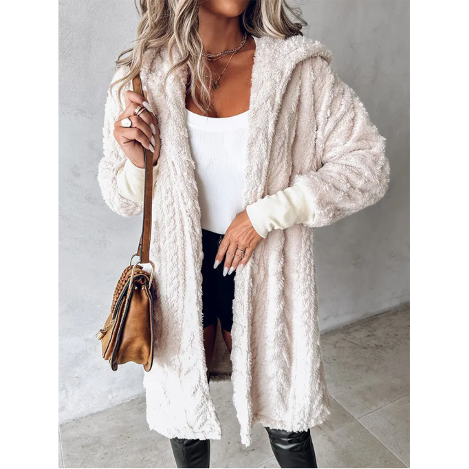 • Product Code: casual-solid-color-plush-hooded-coat-12851