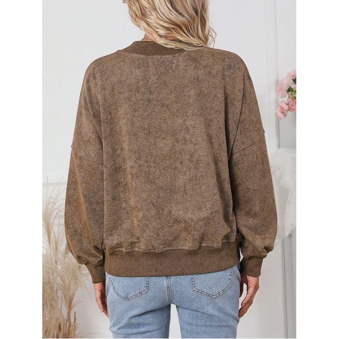 Brown Drop Shoulder Crew Neck Pullover Sweatshirt